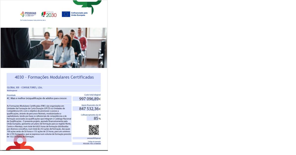 A Global XXI desenvolve cursos de Educação e Formação de Adultos de dupla certificação (escolar e profissional). Aproveite esta oportunidade de inves...
